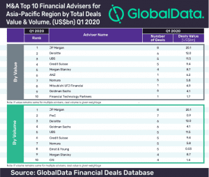 M&A top 10 financial advisers for Asia-Pacific Region by Total Deals